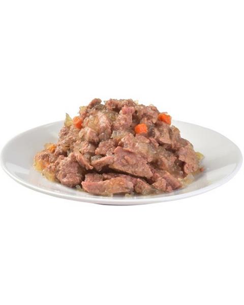 85% mäsa vo filetoch (62% kura, 15% pečeň, 4% kačica, 4% moriak), vývar, 3% mrkva, 0.5% rozmarín, minerály, hrachový škrob.