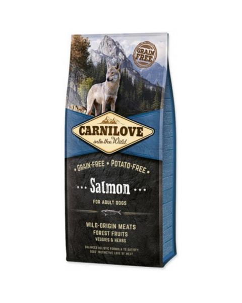 Carnilove jenajvyšší rad krmív českej značky Brit.Carnilove Dog Salmon for Adult je krmivo bez obsahu obilnín a zemiakov. Zdrojom vysoko kvalitných proteínov je losos. Sacharidy sú zastúpené predovšetkým žltým hrachom, tapiokou, jablkami a cícerom. Nezaťažuje trávenie a má protizápalové účinky. Jebohatým zdrojom Omega-3 nenasýtených mastných kyselín, ktoré pozitívne ovplyvňujú mentálny vývoj, kardio-vaskulárne sústavu a metabolizmus (znižujú obsah krvného cukru). Mäso a tuk z lososazlepšuje kvalitu a vzhľad srsti a kože, a tiež pomáha predchádzať degeneratívnym ochoreniam zraku.