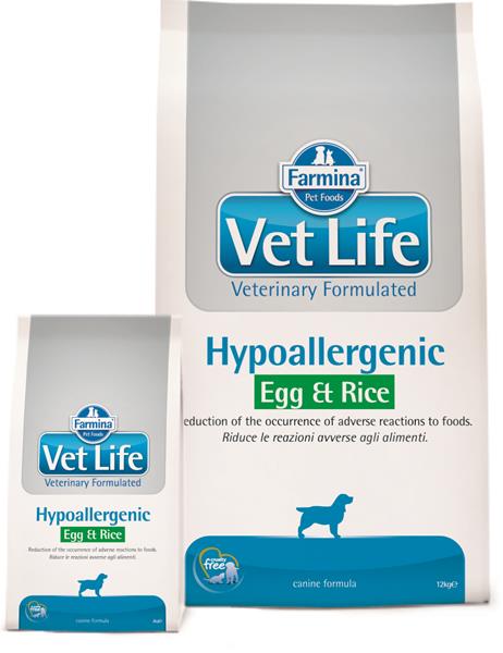 Farmina Vet Life Hypoallergenic Egg & Rice je kompletné monoproteínové krmivo pre psy, odporúčané na manažment pacientov s potravinovou alergiou, potravinovou intoleranciou a tiež na zlepšenie kvality kože a srsti v prípade dermatóz a nadmerného vypadávania srsti.