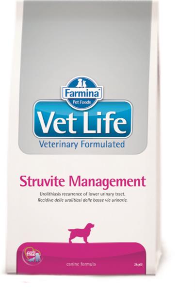 Farmina Vet Life Struvite Management je kompletná veterinárna diéta pre psy na zníženie opakovanej tvorby struvitových kameňov.