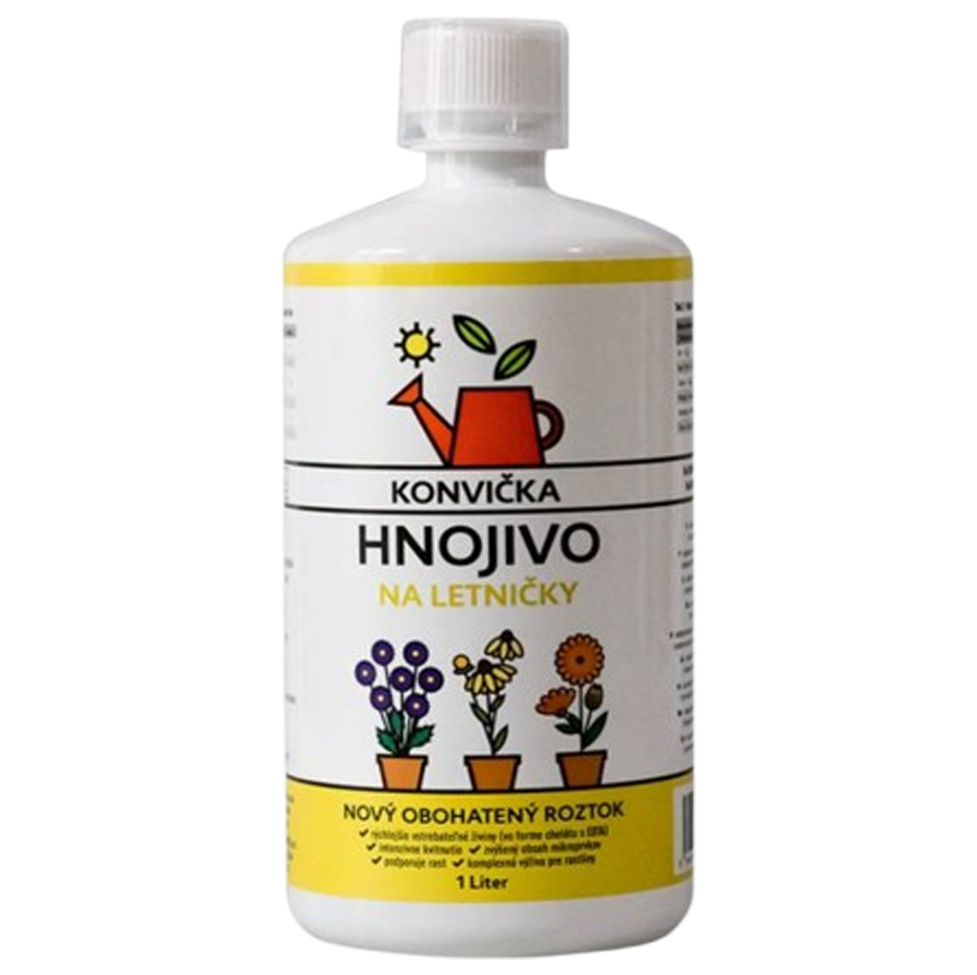 Nový obohatený roztok hnojív na letničky obsahujúci NPK 7–5–6 a mikroprvky vo forme chelátu s EDTA, bez chloridov.