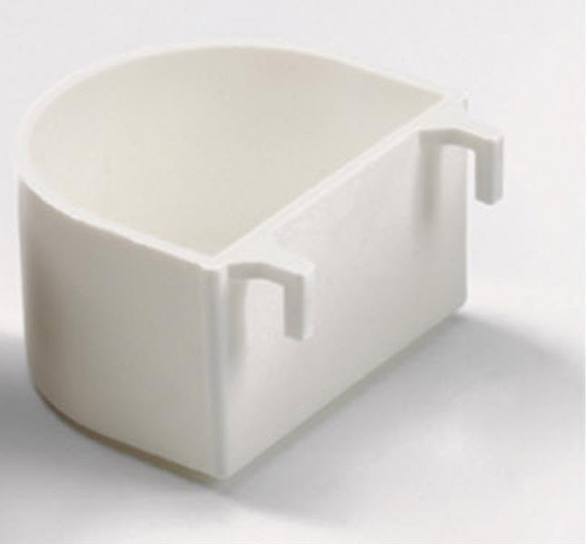 Biele plastové kŕmidlo s držiakmi pre jednoduché zavesenie do klietky. Kŕmidlo je ľahko umývateľné.