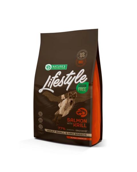 Nature's Protection Lifestyle Grain Free with Salmon and Krill for Adult Small and Mini Breeds je super prémiové kompletné a vyvážené suché krmivo pre psov s najkvalitnejšími zdrojmi bielkovín a surovinami. Toto suché krmivo pre psov je špeciálne navrhnuté pre dospelých psov malých a mini plemien, ktorým pomáha zabezpečiť bezproblémový tráviaci systém. Je obohatené o inovatívne zložky, ktoré neobsahujú žiadny lepok, a poskytuje dokonalý výkon pre pohodu domáceho maznáčika. Kompletné zloženie tohto suchého krmiva pre psov poskytne vášmu domácemu miláčikovi nielen všetky účinné živiny, ale zabezpečí aj zdravý stav kože a lesklú srsť.