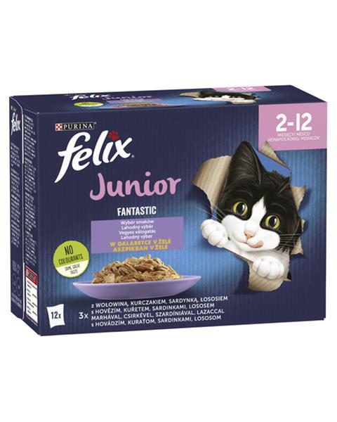 Nestlé FELIX Fantastic cat Multipack junior hovädzie, kura, sardinky, losos v želé kapsička 12x85 g