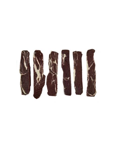 jahňacie mäso 72%, treska 8%, kukuričný škrob 10%, hovädzie kože 5%, konzervanty