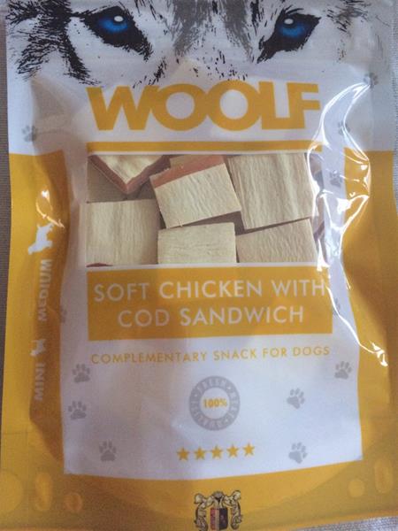 Pamlsok Woolf Dog Chicken & Codfish Soft Sandwich 100 g