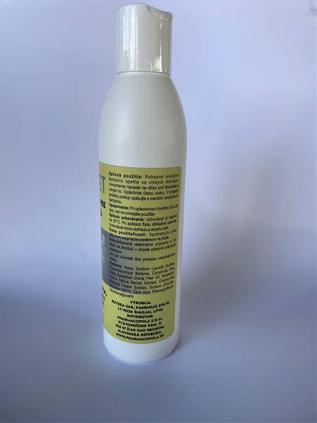 -Potrebné množstvo šampónu speňte vo vlhkých dlaniach, rovnomerne naneste na vlhkú srsť psa aumyte ju. Opláchnite čistou vodou. Ak je to potrebné, postup opakujte smenším množstvom šampónu.