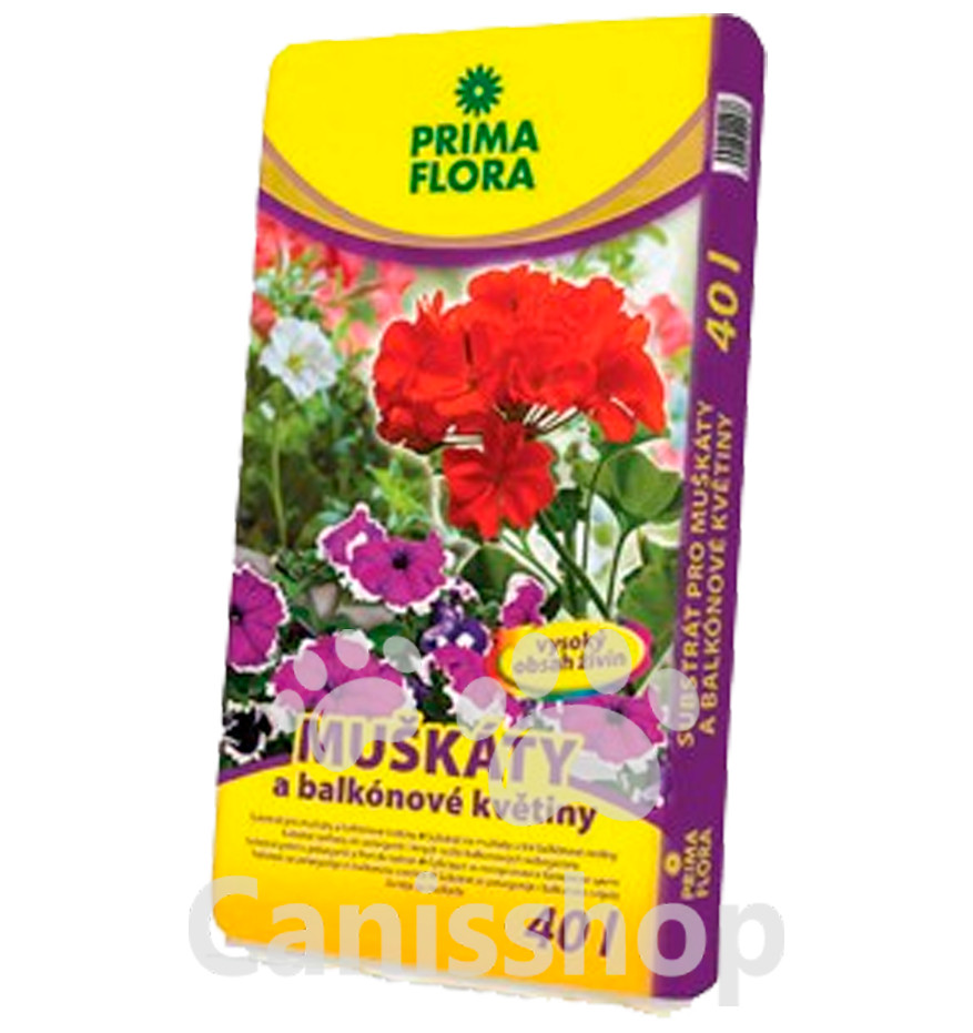 • substrát s vysokým obsahom živín • na pestovanie muškátov a iných balkónových kvetov (petúnie, surfínie, verbeny, begónie, fuchsie, a pod.)