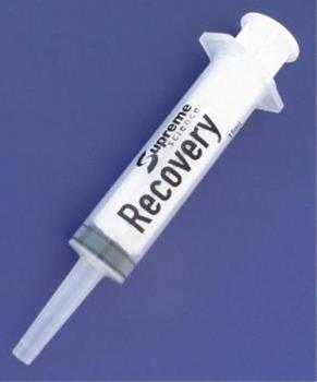Injekčný aplikátor srozšíreným ústím pre podávanie tekutých rehydratačných roztokov Supreme Recovery plus.