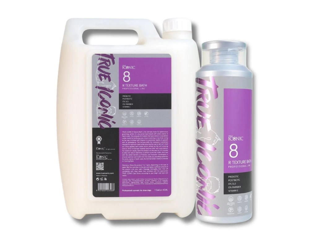 TRUE ICONIC R-Texture Bath Shampoo je speciálně vyvinutý pro potřeby hrubosrstých plemen, zejména teriérů. Jeho receptura posiluje každý jednotlivý chlup, zvyšuje pružnost srsti a obnovuje její přirozenou strukturu – bez nadměrného vysušování pokožky.